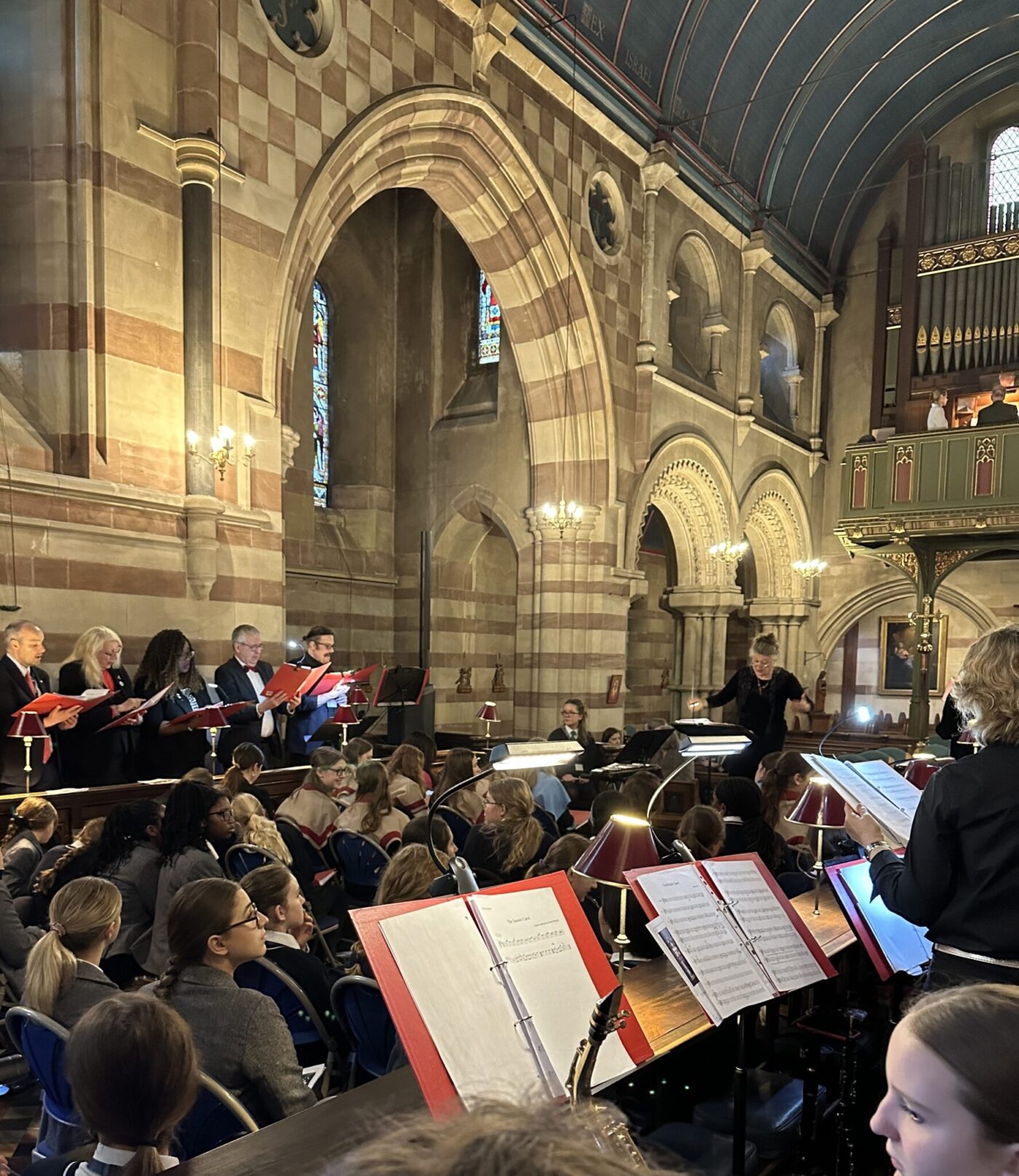 The Carol Service provided a wonderful end to the Michaelmas Term and the start of the Christmas holidays. This year the service was held at Ascot Priory across the road from School and began with a beautiful rendition of Adolphe Adam’s haunting O Holy Night setting the scene before Dasha (Form I) sang the first verse of Once in Royal David’s City. In keeping with the long-established tradition, the choirs and congregation joined in from the second verse, culminating in the well-known David Willcocks descant soaring above the last verse.