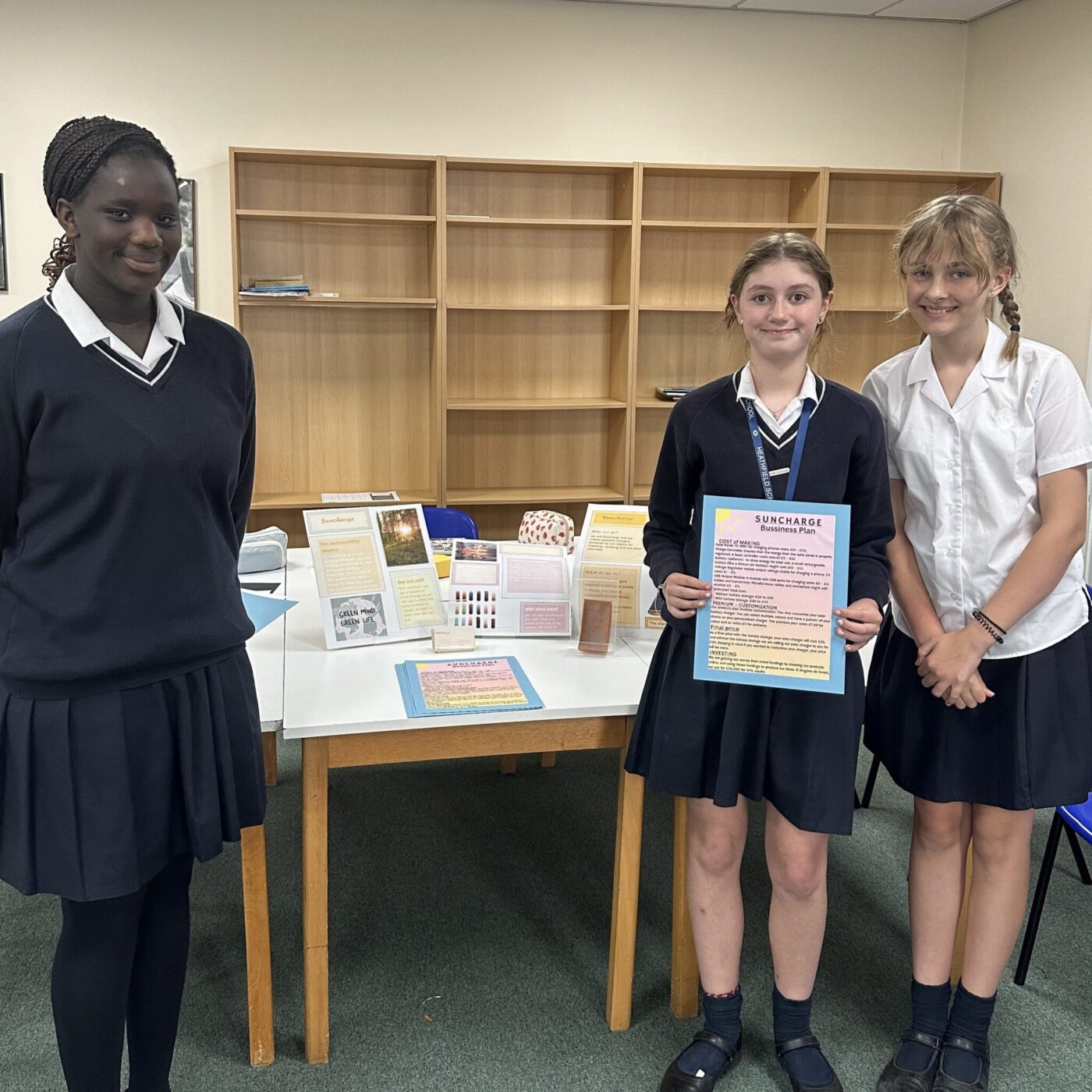 The winning and runner up groups successfully negotiated to reduce the amount of their company they had to give in return for their investment. The winners were Group 3 consisting of Emilia, Antonia, Esther and Minty with their charger using solar power. They have nominated UNCHR to receive their prize money of £50.
